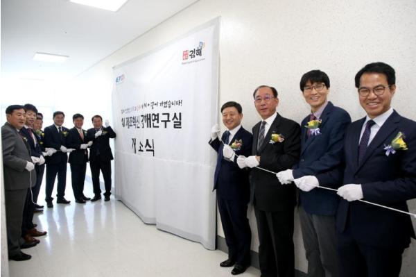 이날 행사는 허성곤 김해시장과 김명준 한국전자통신연구원장 등 양 기관 대표와 김형수 김해시의회의장 등 관계자 등 20여명이 참석한 가운데 협약식과 향후 협력계획 보고, 공동 구축한 AI 제조혁신 김해연구실 제막 및 투어 순으로 진행됐다.