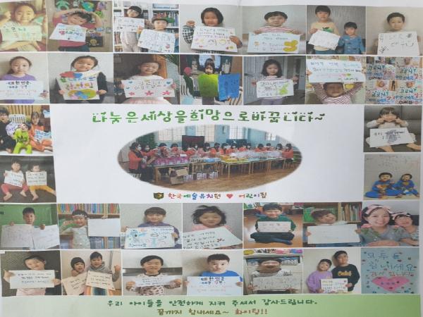 대구 수성구 ‘한국예술유치원·어린이집’은 최근 아이들이 직접 만든 응원메시지를 수성구보건소에 전달했다.