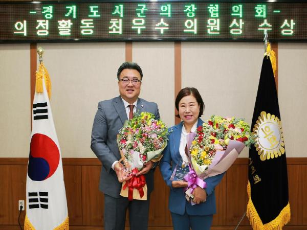 경기도 시·군의회의장협의회(회장 박문석)가 주최한 「의정활동 우수의원」 포상은 31개 시·군의 시의원을 대상으로 지역경제활성화, 공약실천, 예산 절감 등 총10개 분야에서 의정활동 수행에 현저한 공적이 있거나 타의 모범이 되는 우수 의원을 선정하여 수여하는 상으로써, 임호석 부의장은 ‘지역현안해결 분야’, 이계옥 의원은 ‘주민참여소통 분야’에서 각각 최우수상을 받았다.