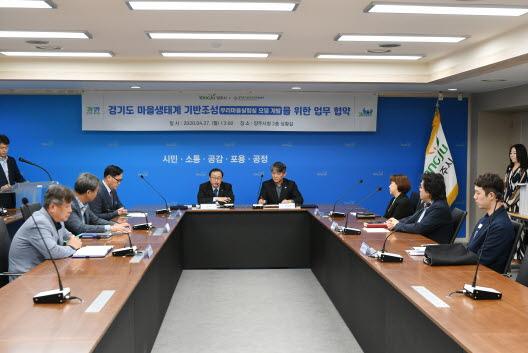 이날 협약식은 주민참여 확대와 지역특성을 반영한 실효성 있는 마을문제 해결 시범사업 실시 등 경기도형 마을생태계 혁신모델을 본격 개발하기 위한 것이다.