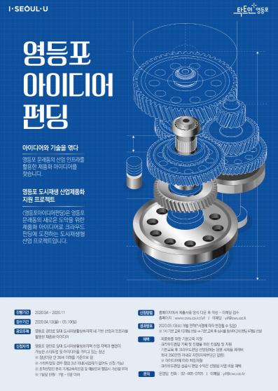 영등포구(구청장 채현일)가 문래동 금속제조업 장인과 청년 창업자가 협업해 제작한 시제품에 시민들의 투자를 유치해 상품화하는 영등포형 크라우드펀딩 ‘2020 영등포아이디어펀딩’을 추진한다.