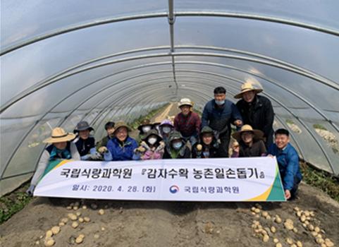 국립식량과학원 김상남 원장과 직원 14명은 28일, 전북 김제시 감자 재배 농가를 방문해 감자 수확과 선별작업을 도왔다. 또한, 시설하우스 내·외부를 정리하는 등 영농 지원 활동을 펼쳤다.