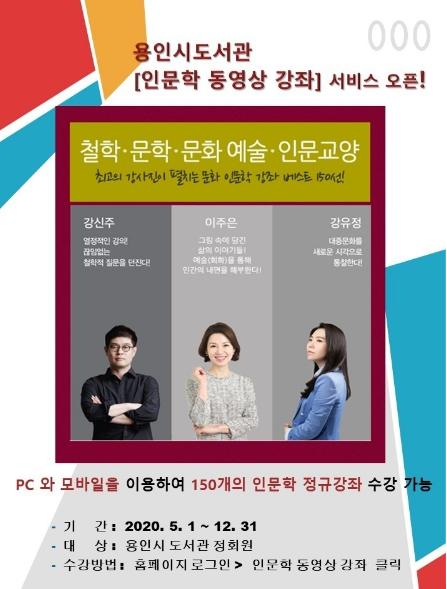 용인시도서관은 시민들이 시간과 장소에 구애받지 않고 원하는 인문학 수업을 무료로 들을 수 있도록 5월1일부터 온라인 강좌를 제공한다고 밝혔다.