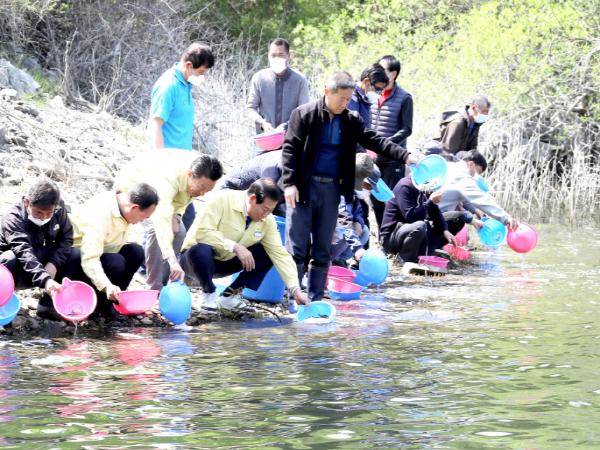 박병욱 환경과장은 “뱀장어 치어 방류를 시작으로, 쏘가리, 붕어 등 토종어류를 지속적으로 방류할 계획이며, 풍부한 어족자원 증식과 어민소득 증대를 위해 노력하겠다.”고 전했다.