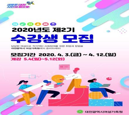 대전시 여성가족원은 이달 3일부터 12일까지 2020년 제2기 강좌 수강생 7,053명을 모집한다고 1일 밝혔다.