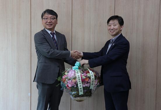 우병렬 경제부지사, 홍정섭 원주지방환경청장에 꽃바구니 전달