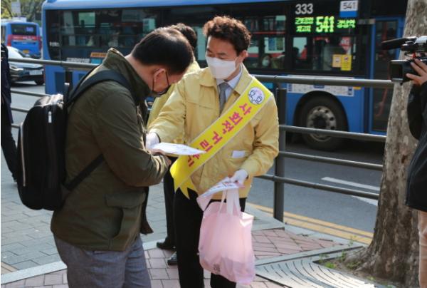 이날 캠페인에는 김종천 과천시장도 함께 참여해 시민들에게 코로나19의 확산 방지를 위해 사회적 거리두기와 개인위생수칙 등을 지켜줄 것을 당부했다.