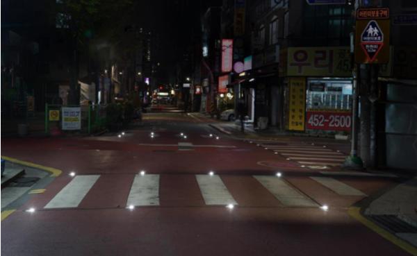 활주로형 횡단보도는 횡단보도 양 옆에 매립형 LED등을 설치, 운전자의 시인성을 강화해 사고를 예방할 수 있는 조명시설이다. 매립형 LED등은 조도센서를 통해 자동 점멸되는 방식으로 작동해 밤길 뿐 아니라, 미세먼지, 안개, 우천 등 가시거리가 짧을 때도 효과적으로 사고를 예방할 수 있을 것으로 기대된다.