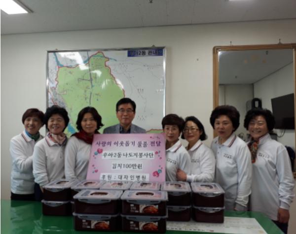 전주시 우아2동 나도지봉사단 회원 9명은 29일 봄내음 가득한 햇김치 20통(100만원 상당)을 직접 담가 코로나로 힘든 시기를 보내고 있는 저소득 가정에 전달했다.