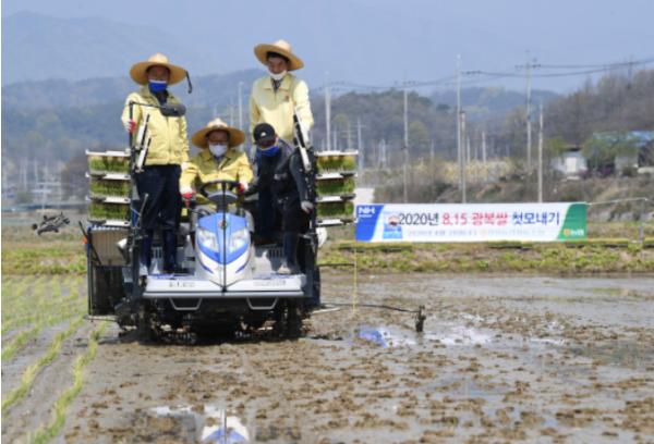 경북 영주시는 지난 29일 안정면 오계리 황순섭 농가의 논에서 8.15 광복쌀 첫 모내기를 실시했다고 밝혔다.