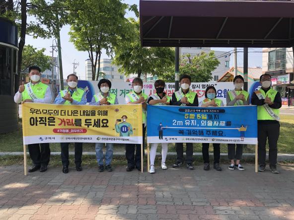 전국적으로 5. 5(화)까지 완화된 사회적 거리두기를 실시하고 있으나, 외출이 자유롭지 못한 기간이 길어지는데다 포근한 날씨, 30일부터 시작되는 긴 연휴기간이 겹쳐 많은 나들이 인파가 몰릴 것으로 예상됨에 따라 코로나19 확산 방지를 위한“사회적 거리두기”캠페인을 실시하였다. 캠페인이 진행되는 동안 참가자는 항시 마스크를 착용하고 시민들과 최대한 접촉을 피하기 위해 비대면 형식으로 캠페인을 진행하였다.