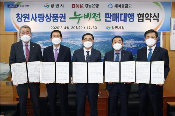 창원시(시장 허성무)는 29일 창원사랑상품권(누비전)의 원활한 유통을 위해 17개 관내 새마을금고와 누비전 판매대행 업무협약을 체결했다.