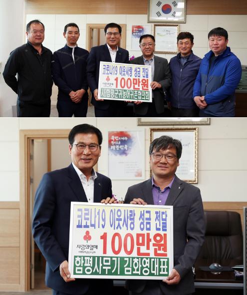 함평군(군수 이상익)은 지역에 소재한 함평사무기(대표 김화영)와 (사)함평군귀농어귀촌협의회(회장 박춘추)에서 코로나19로 어려움을 겪고 있는 저소득 취약계층을 위한 성금 1백만 원을 각각 기탁했다고 29일 밝혔다.