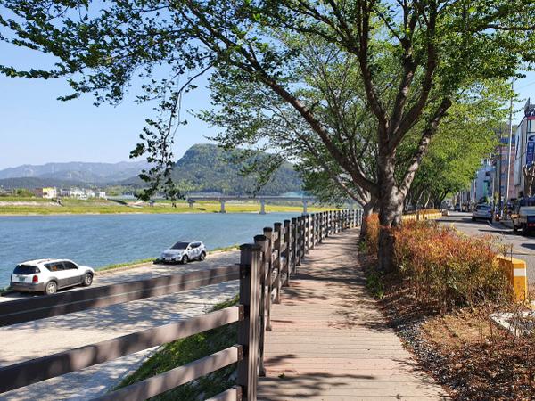 산청군 신안면이 지역주민들의 이용이 많은 경호강변 데크길에 관상목을 심어 호응을 얻고 있다.