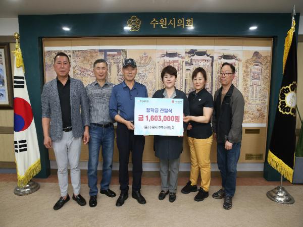 수원시 구두수선협회(총회장 한금정)가 1일 시의장 집무실에서 어려운 가정형편에서도 성적이 우수한 학생들을 위해 마련한 장학금 160만 3천원을 수원시의회에 전달했다.