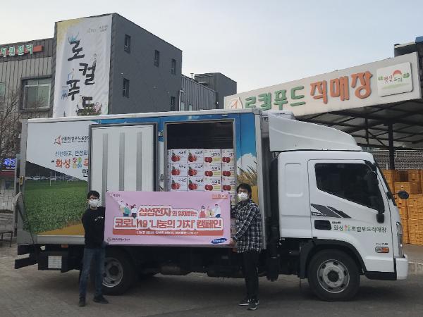 삼성전자 기흥사업소에서는 사과즙과 포도즙 등 관내 농산물로 만든 가공식품 6만여 개를 구매해 힘을 보탰다.