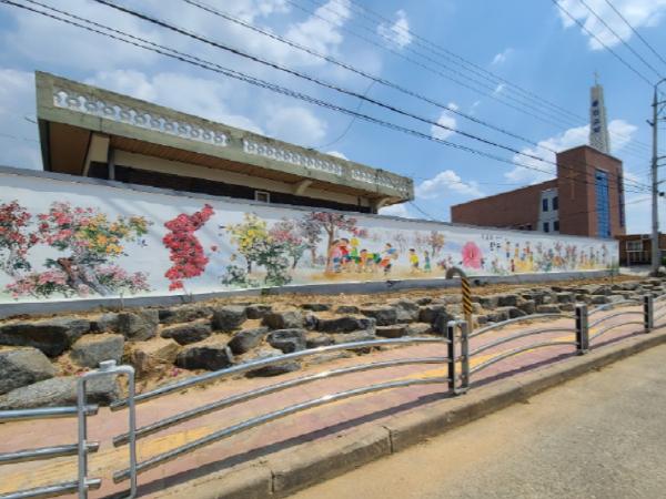 나라꽃 무궁화 대표도시 완주군이 군청 진입로 주변에 나라꽃 무궁화 벽화 작업을 완료했다.