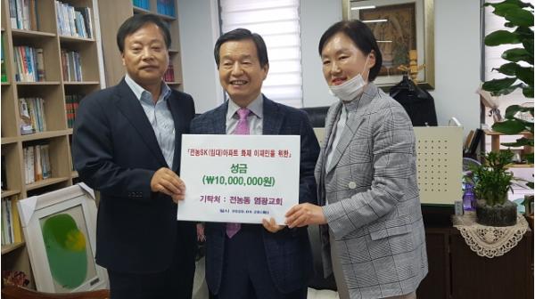 이어 전농2동 희망복지위원으로 활동하고 있는 염광교회 전두호 목사는 피해 주민들이 충격과 아픔을 하루빨리 이겨내고 밝은 미래를 꿈꾸기 바란다며 피해 가구에 총 1,000만 원을 후원했다.