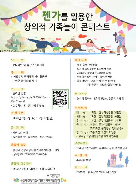서울 용산구 건강가정·다문화가족지원센터(센터장 황혜신)가 5월 가정의 달을 맞아 ‘젠가를 활용한 창의적 가족놀이 콘테스트’를 연다.