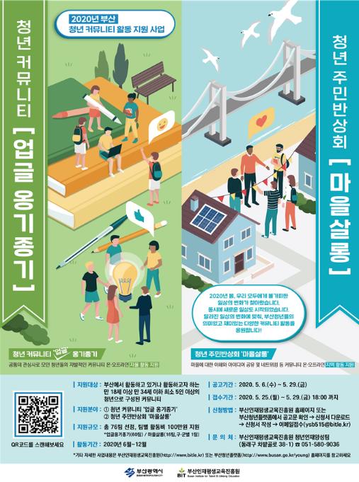 부산시는 청년들의 자발적인 활동여건을 강화하고 사회참여를 활성화하기 위한 「2020년 청년 커뮤니티 활동 지원 사업」의 참여 커뮤니티를 모집한다고 밝혔다.