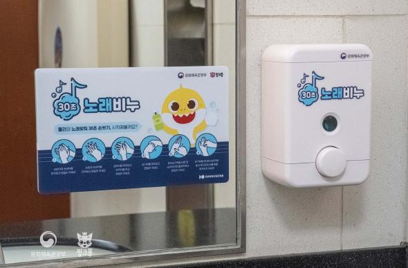 5월 6일 코로나19의 생활방역 체계 전환에 따라 제공되는 "30초 노래 비누’는 손 세정제에서 거품 비누와 함께 30초 동안 ‘아기상어와 손 씻어요’노래가 흘러나오는 것으로서, 이를 통해 생활방역의 기본인 30초 손 씻기를 쉽고 재미있게 실천할 수 있도록 도울 예정이다.