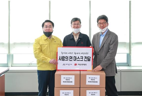 아산시(시장 오세현)는 4월 1일 코로나19 지역확산 방지를 위해 필터교체형 면마스크 2000여개를 관내 아산우체국, 아산시건강가정·다문화가족지원센터, 장애전문용화어린이집 등에 전달했다.
