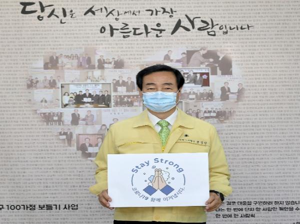 문 구청장은 ‘Stay Strong - 코로나19 함께 이겨냅시다’란 글과 비누 거품 및 손을 마주 댄 이미지가 담긴 팻말을 들고 캠페인에 동참한 뒤, 김영종 종로구청장, 이동진 도봉구청장, 이성 구로구청장 등 3명을 다음 참여자로 지목했다.