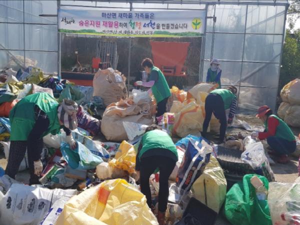 충청남도 서천군 마산면(면장 이길량)과 새마을남녀지도자협의회(회장 박원희, 부녀회장 한부월)는 6일 마산면 보건지소 옆 영농 폐기물 처리장에서 ‘숨은 자원찾기’ 행사를 개최했다.