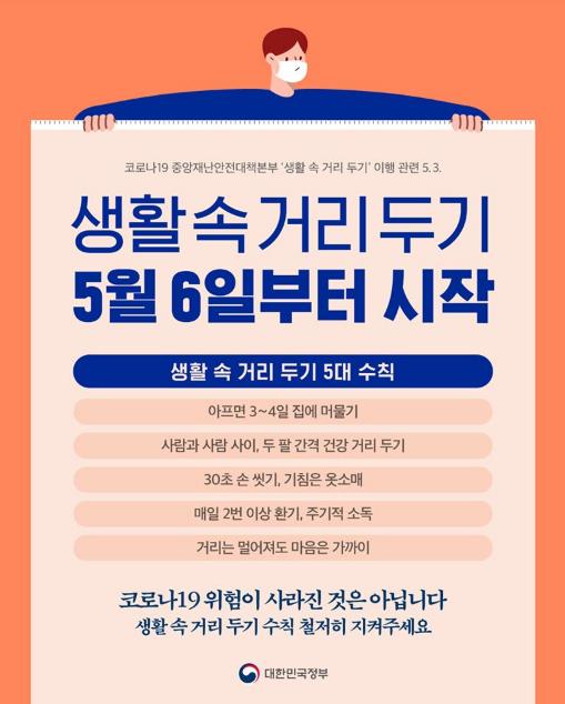 5월 6일부터 생활 속 거리 두기로 이행합니다.