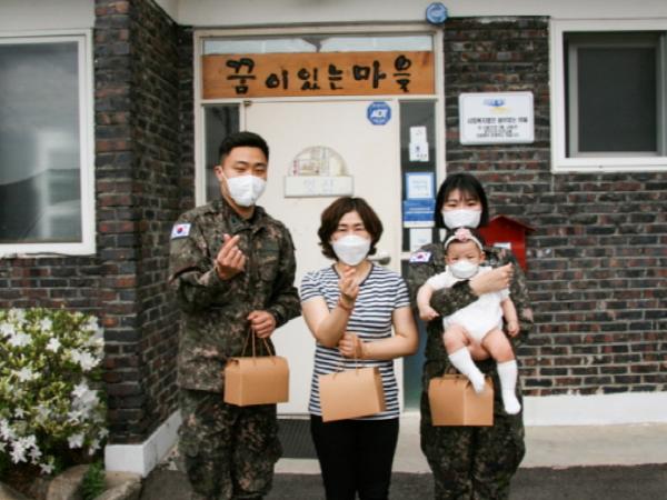 지난 3일, 포천 지역 아동복지시설인 ‘꿈이 있는 마을’에 육군 6군단 정보통신단 홍재화 중위(남, 28세)가 가족과 함께 직접 구매한 속옷과 양말, 외출복 등 위문품을 전달해 주위를 훈훈하게 하고 있다.