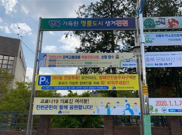 7일 군에 따르면 코로나19 확진자 감소세와 가정의 달인 5월이 맞물려 행락객의 이동이 많아 질 것을 대비해 관내 공공게시대 및 주요 적발장소 등 총 40여 곳에 장애인전용주차구역 준수 관련 홍보 현수막을 게시했다.