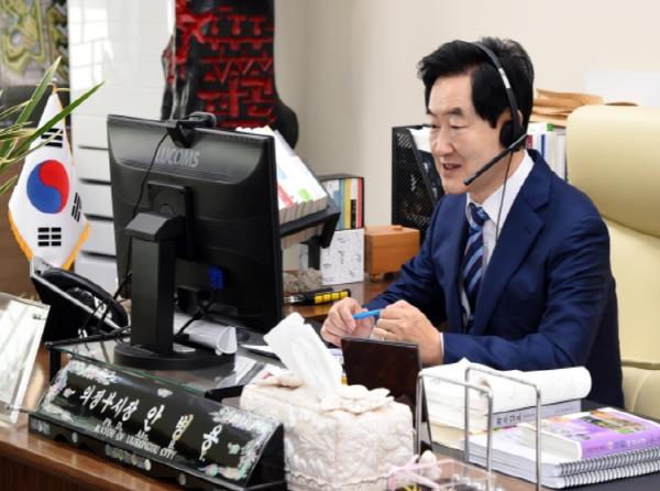 의정부시(시장 안병용)는 5월 7일 코로나19 대응 상황 공유와 긴급재난지원금 지급 등 5월 주요 현안사항에 대해 논의하기 위한 확대간부회의를 영상회의로 실시했다.