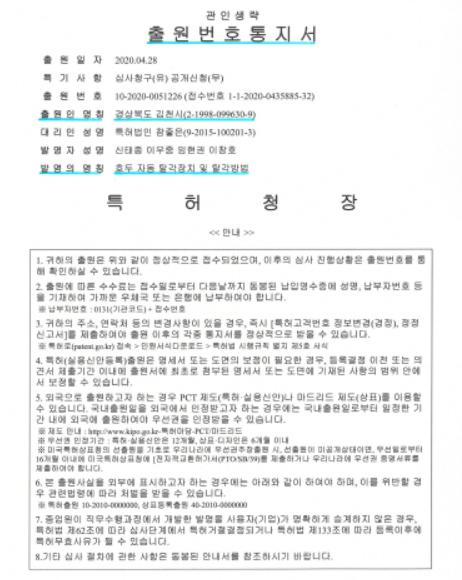 김천시(시장 김충섭)는 김천호두 농가의 인건비 절약과 호두생산 주산지로서의 김천의 경쟁력을 제고하기 위해‘알호두 자동탈각장치 및 탈각방법’에 대하여 특허를 출원하였다.