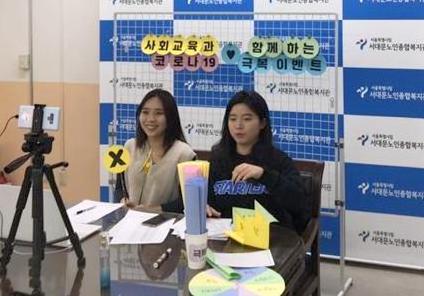 서대문노인종합복지관에서 주중 매일 오후 2시부터 4시까지 카카오TV와 유튜브를 통해 생방송하며 복지관 이용 어르신들에게 문자를 보내 사이트 로그인을 안내한다.