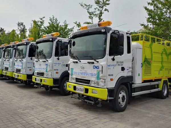 시는 최근 18억원(국비 9억원 포함)을 들여 천연가스(CNG) 살수 차량 8대와 분진흡입청소 차량 1대를 사들였다.