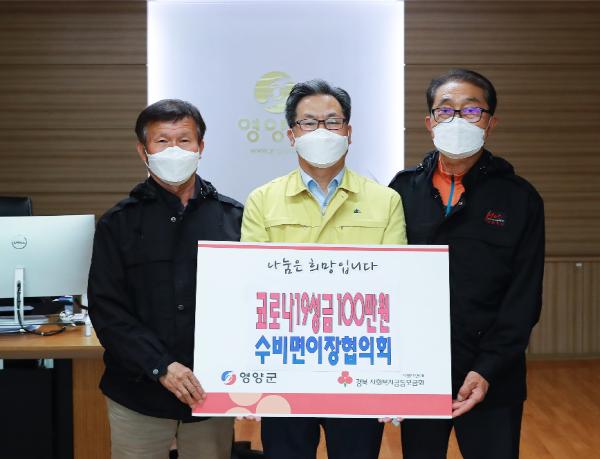 경북 영양군 수비면이장협의회(회장 박병훈)에서는 지난 4월 2일 영양군청을 방문하여 100만원의 성금을 기탁하며 코로나19 극복에 동참하였다.