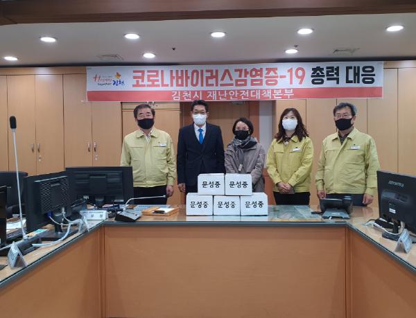문성중학교(교장 김희성)에서 지난 2일 김천시 재난안전대책본부를 찾아 코로나-19 대응에 사용해 달라며 일회용 마스크 1천매를 기탁하였다.