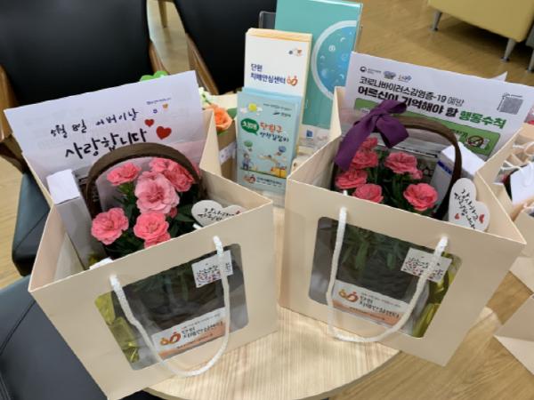 안산시(시장 윤화섭) 단원보건소 치매안심센터는 어버이날을 맞아 센터 등록 치매 환자 중 독거노인 맞춤형 사례관리 대상자와 쉼터·가족 프로그램 참여자에게 ‘카네이션 바구니와 치매 건강꾸러미’를 전달했다고 8일 밝혔다.