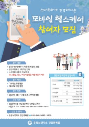 파주시 운정광역보건지소는 2020년 보건복지부 공모사업인 모바일 헬스케어 사업의 참여자를 오는 11일부터 29일까지 모집한다.