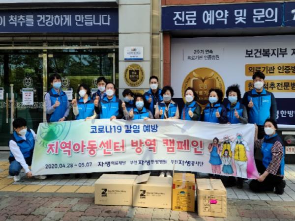 이번 방역 활동에는 자생의료재단, 부천자생한방병원 임직원, 부천자생봉사단원 등 70여 명이 자발적으로 참여하였으며, 부천시 아동청소년과에서도 방역제, 소독용 티슈 등 방역 물품을 지원해 힘을 보탰다.