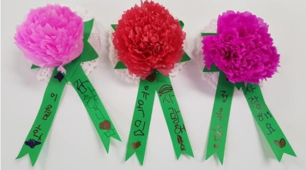 코로나19 확산을 막기 위해 시립세교자이어린이집 원아들은 선생님들과 함께 어린이집에서 지난달 20일부터 약 3주 동안 어르신들의 카네이션을 만들고, 사회복지사와 생활지원사가 어르신에게 철저한 안전관리를 진행한 후 아이들이 직접 전달하는 방식으로 진행했다.