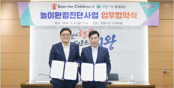 의왕시(시장 김상돈)는 8일 시청 소회의실에서 국제아동권리보호단체인 세이브더칠드런코리아와 함께 ‘놀이환경진단사업’업무협약을 체결했다.