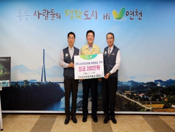 연천군(군수 김광철)은 지난 7일 연천군 한탄강 지질공원해설사들이 코로나19 위기극복을 위한 후원성금 200만원을 모아 연천군에 기탁했다고 밝혔다. 이날 기탁식에는 김광철 연천군수를 비롯하여 연천군 한탄강 지질공원해설사회 윤중덕 회장과 정해린 전 회장이 참석했다.