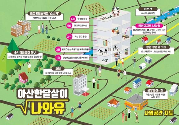 청년들은 온양온천 전통시장, 도고콘텐츠 학교, 송악마을 ‘해유’에서 아산을 알고 창작활동과 공동체성을 회복해 혁신적인 청년활동에 도전하게 된다.