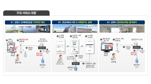 이에 따라 도민들은 공공시설 이용 시 스마트도민카드를 통해 보다 안전하고 간편한 신원확인 서비스를 이용할 수 있게 된다. 창원시는 관광지에서 시행하는 ‘지역주민 요금할인 적용 시’에 기존 실물신분증으로 확인하던 것을 경남분산신원서버에 연결된 매표소 qr코드 스캔으로 안전하고 간편하게 확인할 수 있다. 김해시는 정보화교육장에서 수기로 확인하던 출석확인을, 교육장pc의 출결 웹 접속 qr코드를 이용해 생체인증으로 편리하고 정확하게 출석할 수 있게 된다.