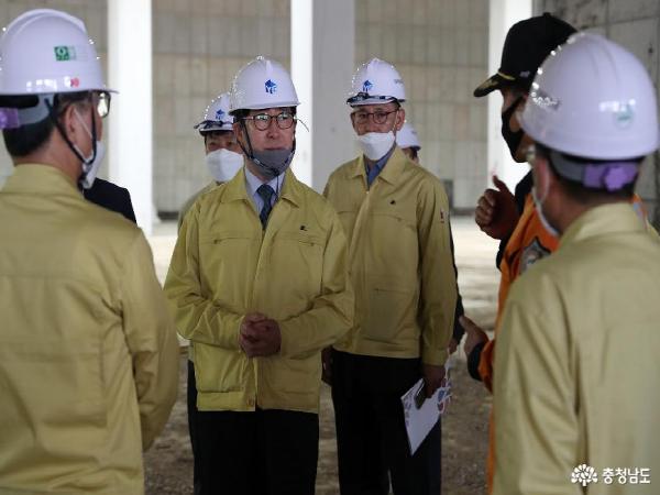 양승조 충남지사는 10일 천안시 서북구 소재 ‘올담에프에스’ 물류창고 신축공사 현장을 찾아 안전관리 실태를 점검했다.