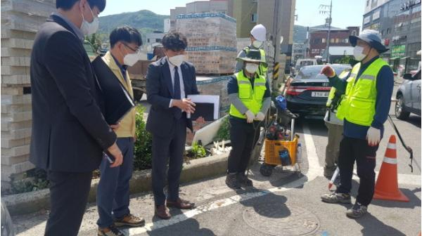 의령군이 2020년도 도로와 지하시설물 전산화 3차 사업을 위한 의령읍 일대 현장점검 및 안전교육을 실시했다.