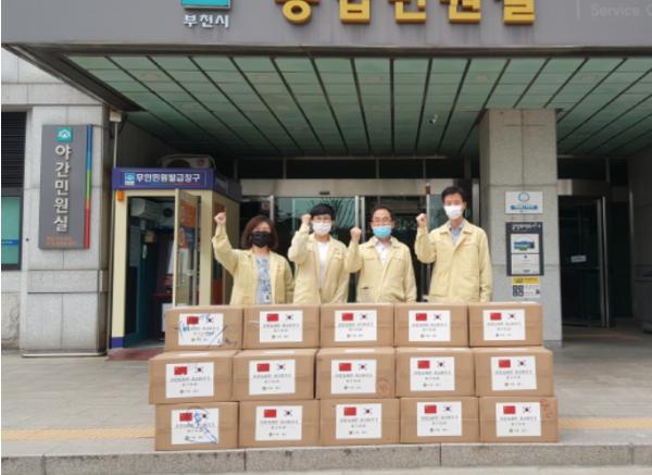 펄벅국제문화교류 협력도시인 중국 진강시에서 부천 시민들을 위해 보내온 마스크 2만 장이 서해를 건너 지난 7일 부천시에 도착해 그 훈훈함이 더해지고 있다.