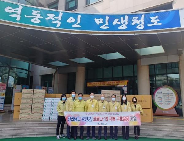 청도군은 2일(목) 국내관광 선도도시 관광협의회의 회원도시인 전라남도 강진군으로부터 김, 미역, 해초 무침, 멸치 등 130박스를 전달받았다.