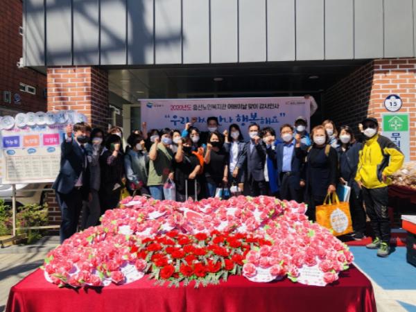 이날 행사는 코로나19에 따른 복지관 휴관으로 간격유지 및 개인소독 ?방역 등 생활속 거리두기를 준수하며 진행되었고, 복지관 외부에서 카네이션, 간식, 화초기르기 키트 등의 나눔선물을 어르신들에게 전달했다.